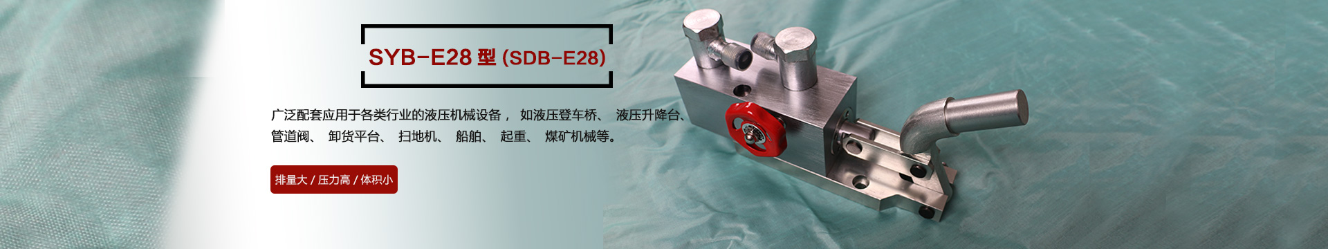 本產(chǎn)品SYB-E28型在本公司原有的SDB-E28型基礎(chǔ)上不斷改進(jìn)改良,廣泛應(yīng)用于各種行業(yè)的機(jī)械設(shè)備,如液壓登車(chē)橋、液壓升降臺(tái)、管道閥、卸貨平臺(tái)、掃地機(jī)、船舶、起重、煤礦機(jī)械等液壓機(jī)械設(shè)備上,效率高、結(jié)構(gòu)緊湊,深受客戶(hù)的歡迎...